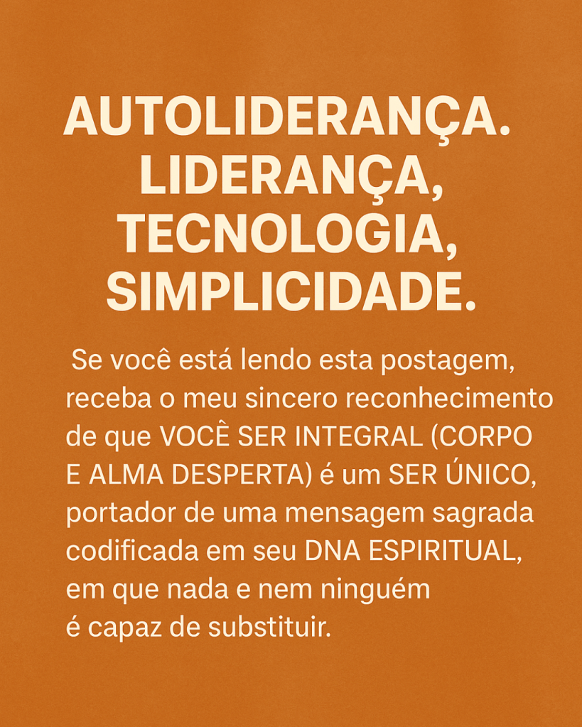 A linha “Autoliderança. Liderança, tecnologia, simplicidade” funciona como um mantra de ativação — une três aspectos aparentemente separados, mas que na frequência do texto se integram: